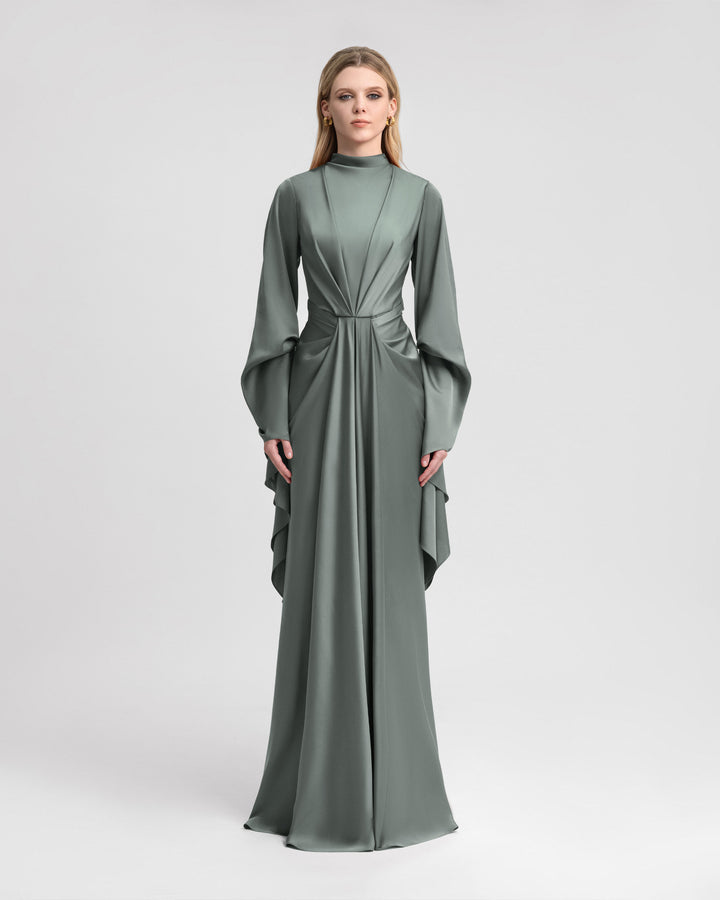 **فستان متوسط الطول بأكمام فلوتر**