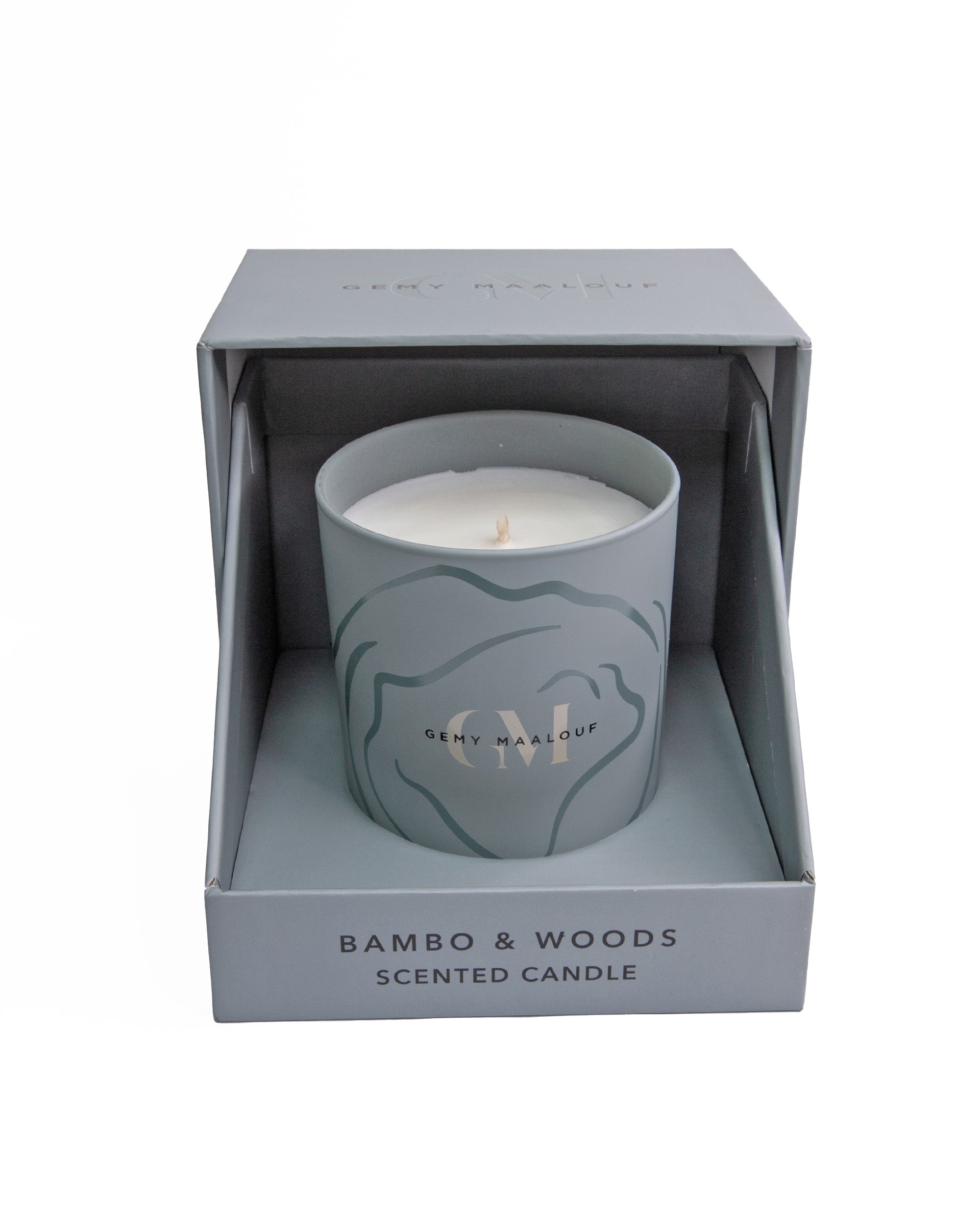 الوصف: شمعة معطرة من الخيزران والأخشاب تقدم في رزمة لونها أزرق.