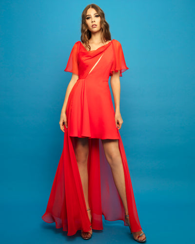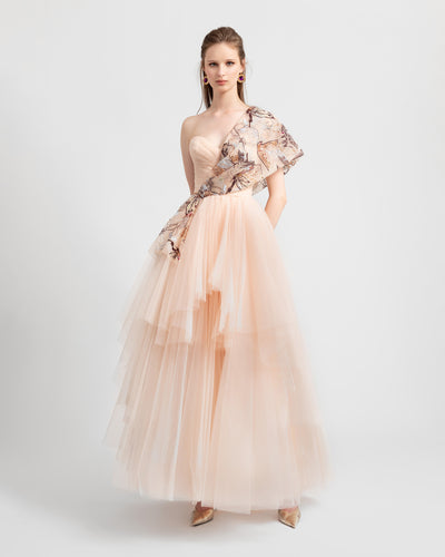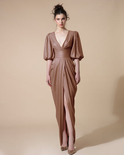 فستان ليلك بقصة ضيقة و رقبة غير متساوية