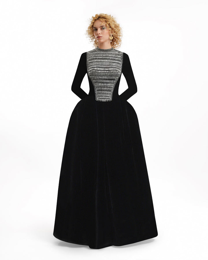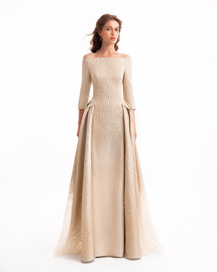فستان مطرّز بأزهار ثلاثية الأبعاد