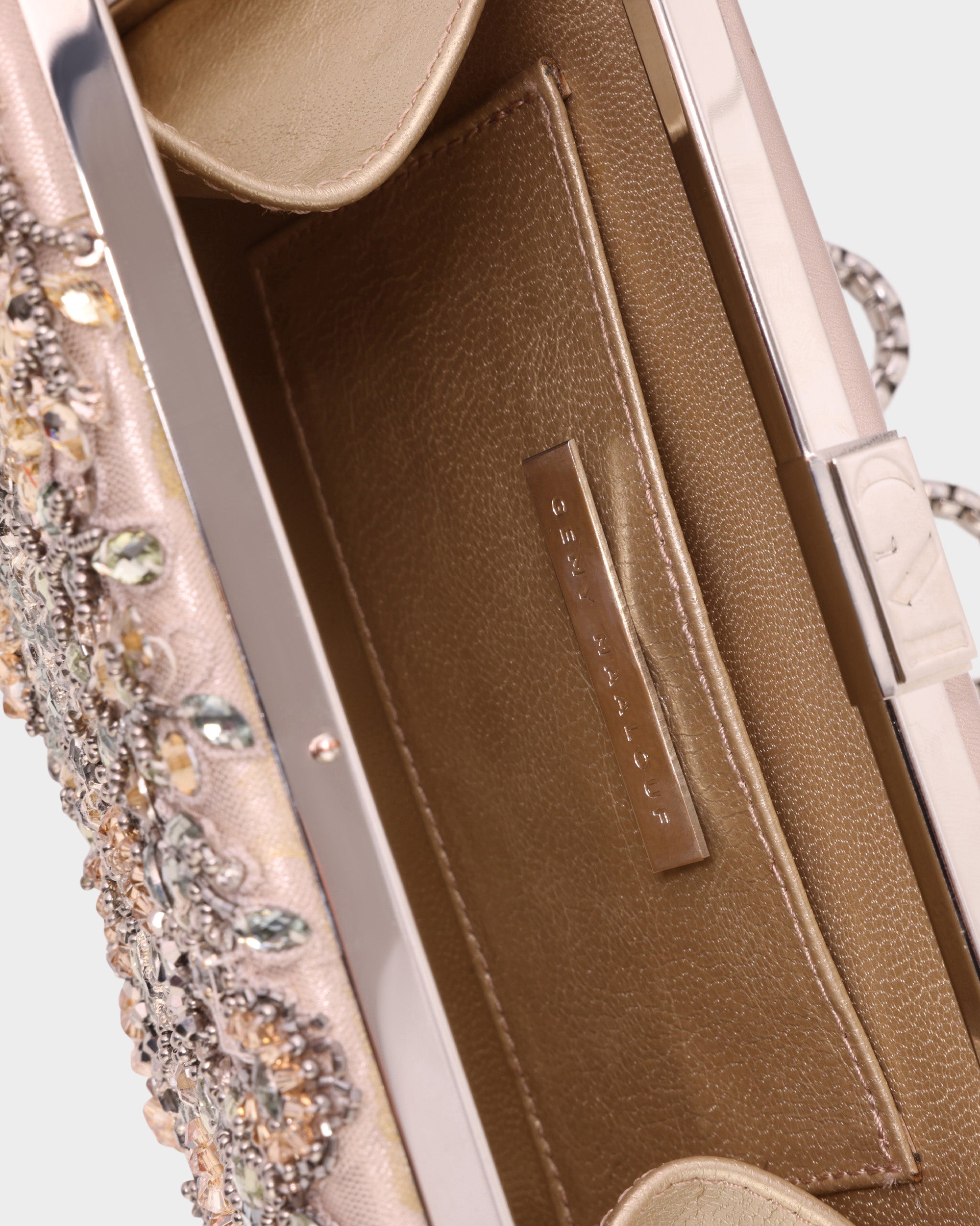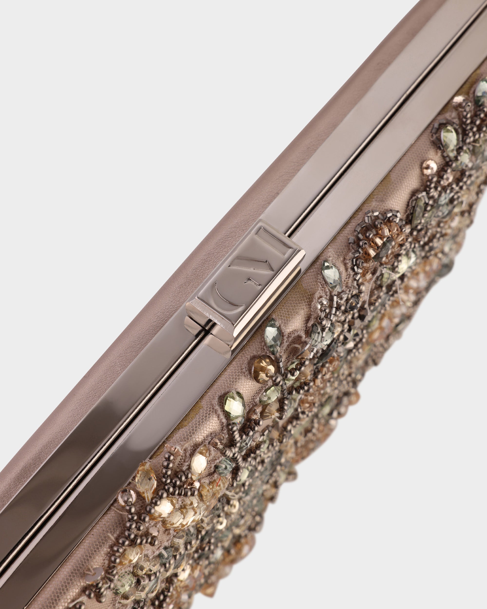 كلاتش من الجلد مرصع بالجواهر مع أجهزة ذهبية.