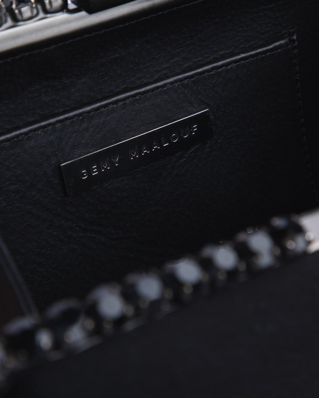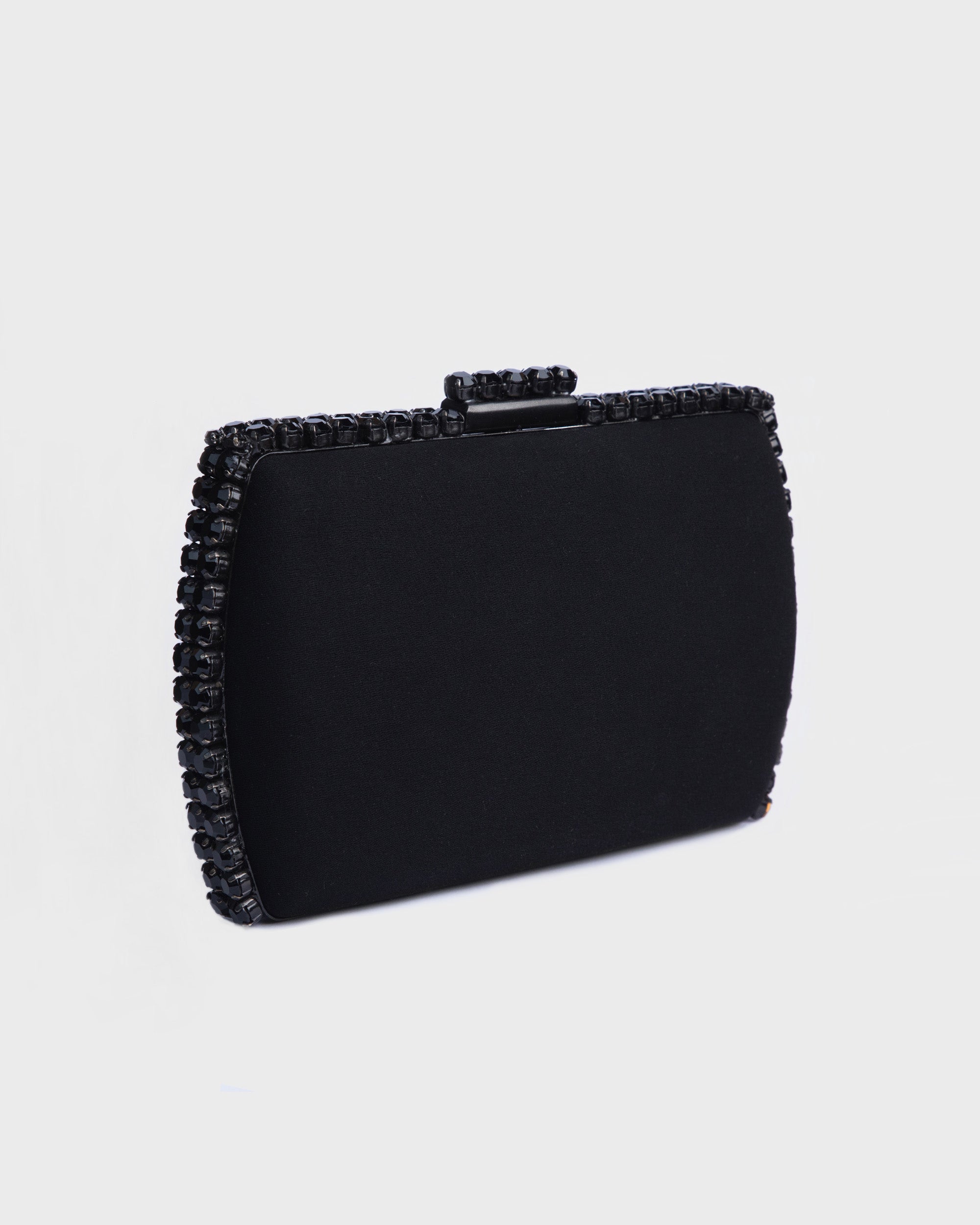 كلاتش كريب أسود مع قطع سود وجواهر.