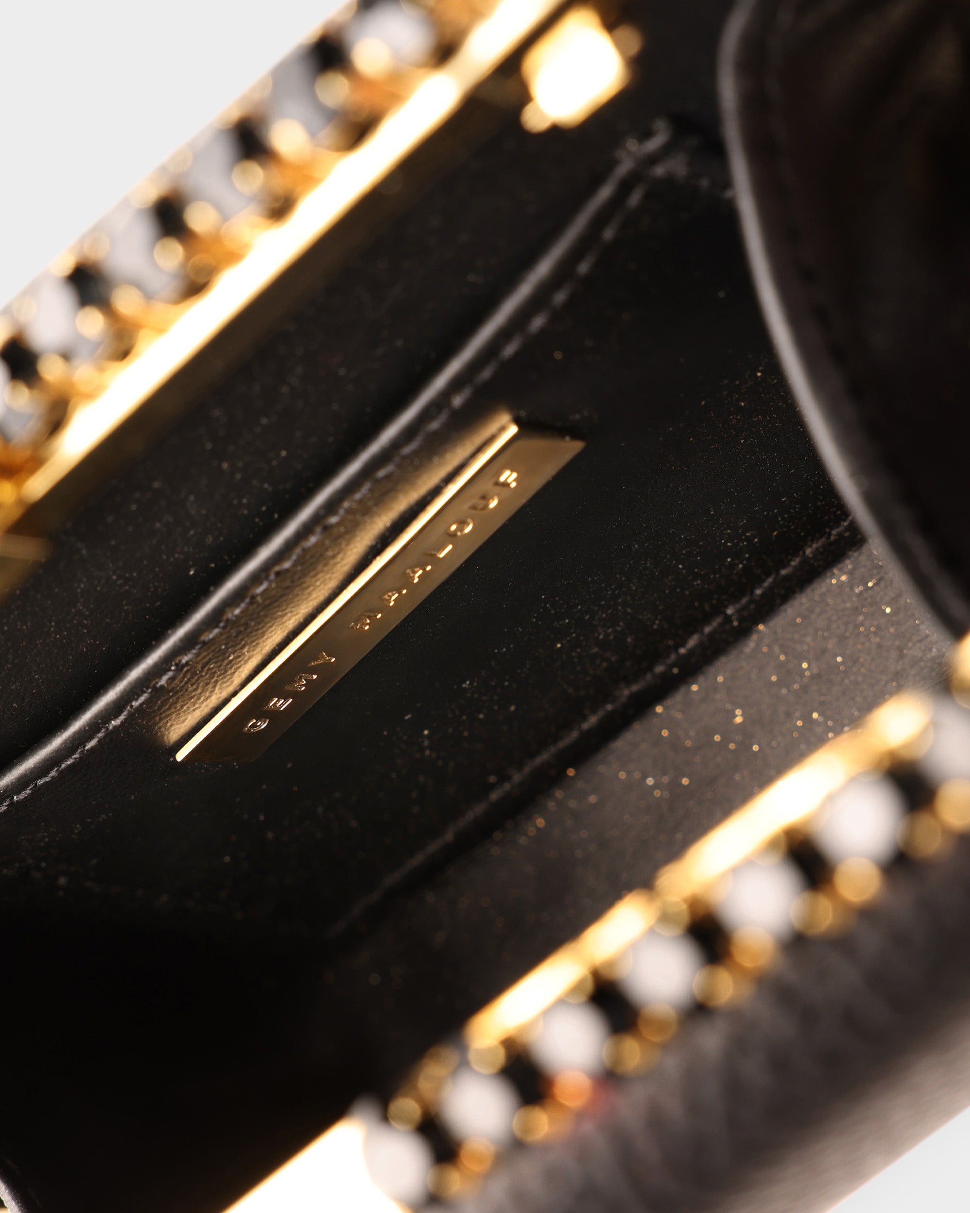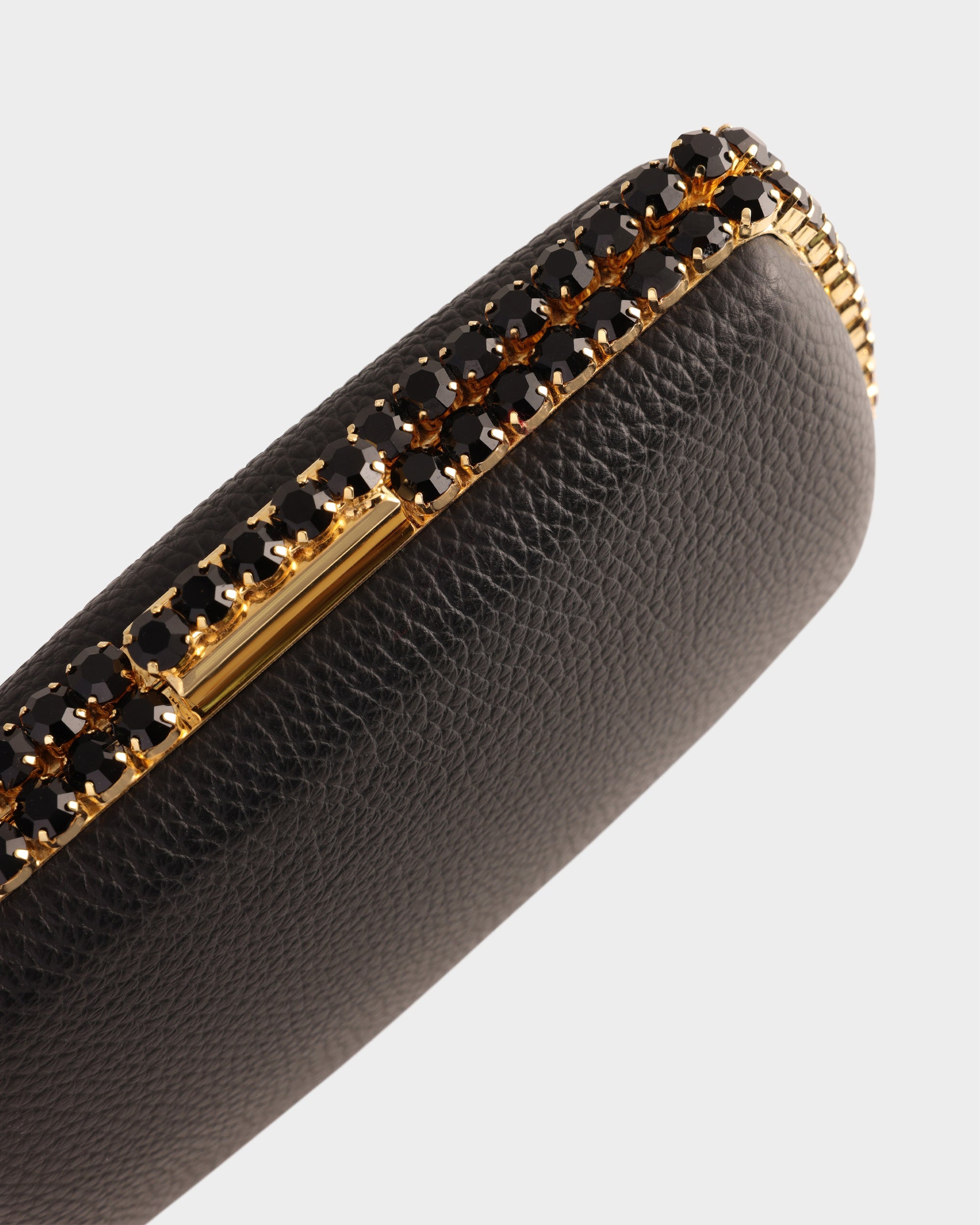 كلاتش أسود جلد مع قطع سوداء وجواهر.
