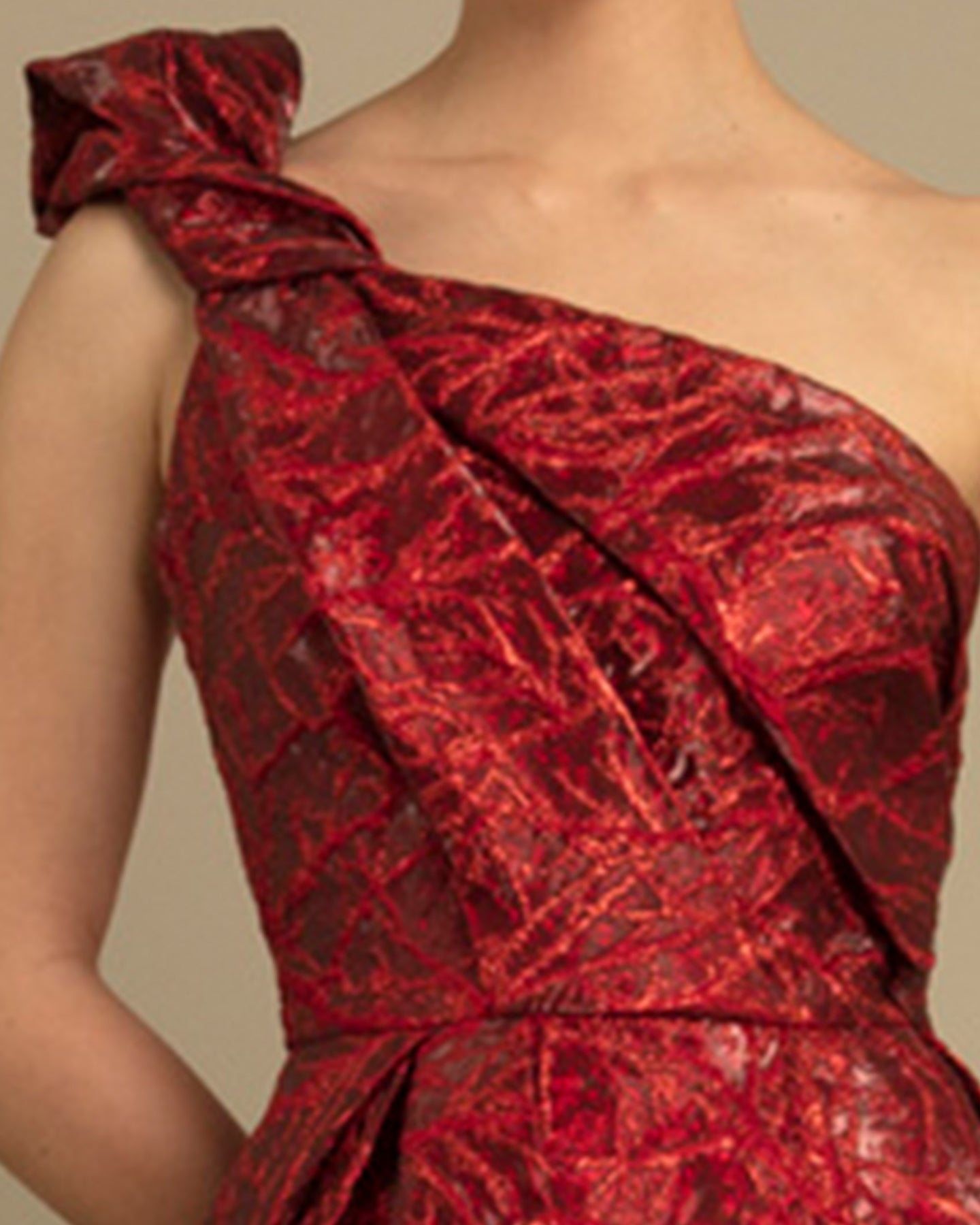فستان بكتف واحد مع ثنيات