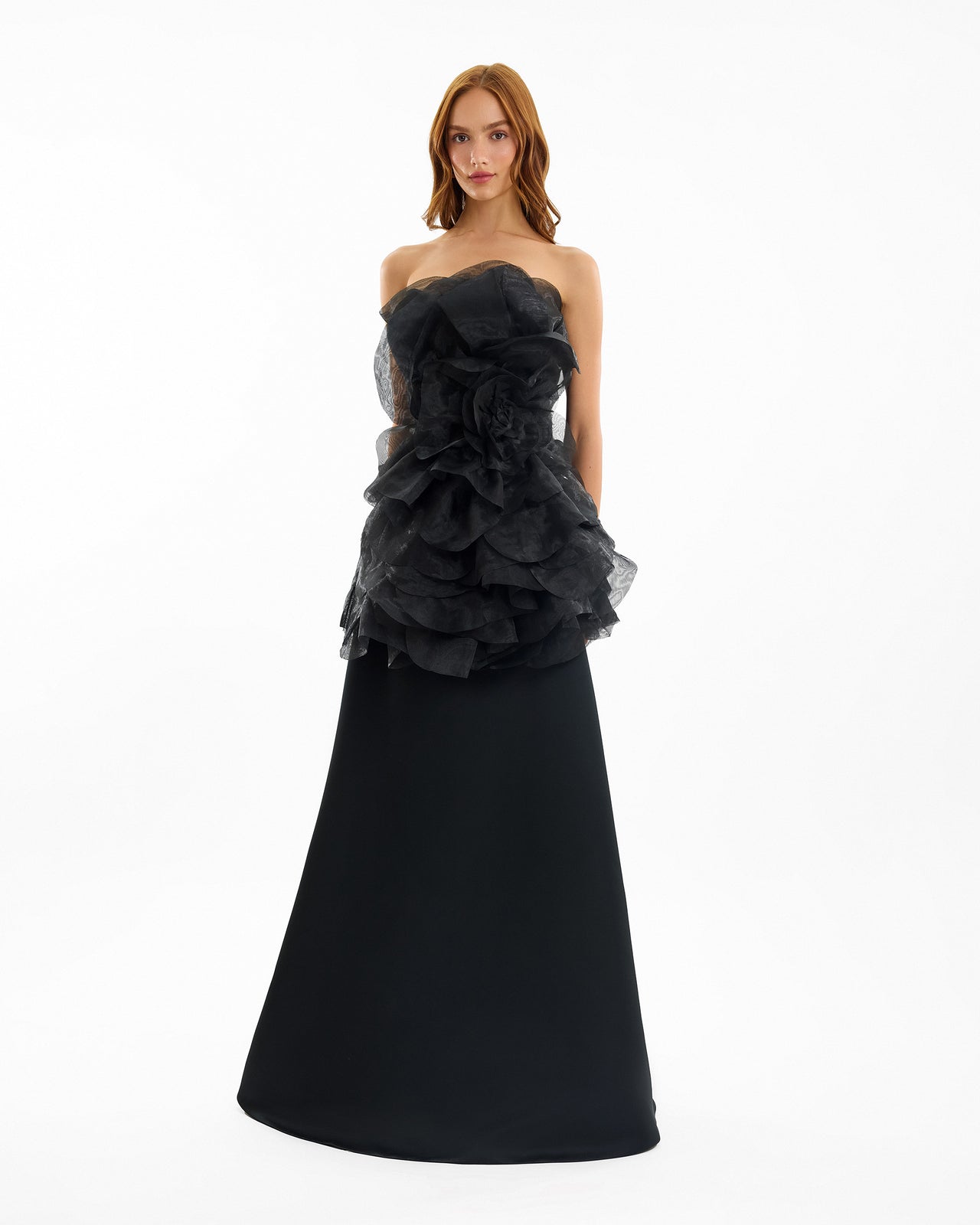 Description: Rushed Tulle and organza clutch with gold hardware.