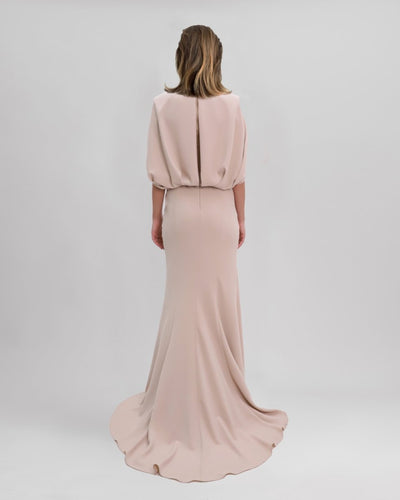 Slim-Cut Nude Dress With Cape Like Sleeves